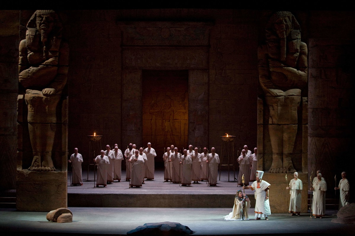 Obsazení: Aida (Anna Netrebko), Amneris (Anita Rachvelishvili), Radames (Aleksandrs Antonenko), Amonasro (Quinn Kelsey), Král (Ryan Speedo Green)