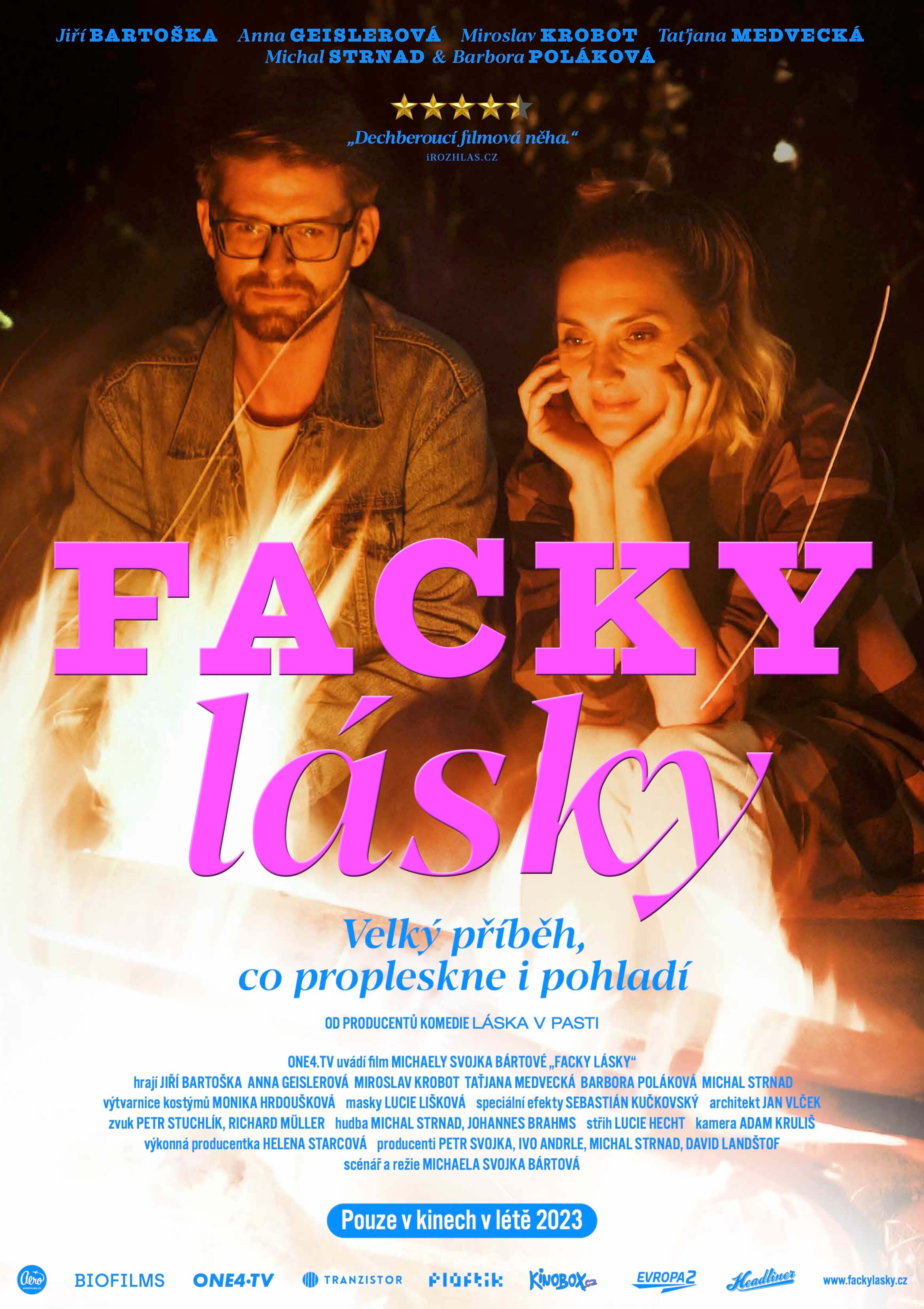 Okouzlující Magda slaví Kristova léta, ale stejně se stále ještě hledá. Netuší, že muzikant Robert, se kterým už pět let chodí, se nikdy nepřestal potkávat se svou ex. V horečnatém snu aktivovaná časová smyčka způsobí, že Magda nestárne a probouzí se vedle Roberta na sklonku jeho života. A pak si role prohodí. Bolestná přítomnost se tak na dva způsoby setkává s odstupem moudrosti. Proč musí být péče o vztah taková dřina? Herecký koncert Jiřího Bartošky, Ani Geislerové, Taťjany Medvecké, Miroslava Krobota, Barbory Polákové a Michala Strnada. Mrazivě komediální Facky lásky jsou ale především nesmírně zralý debut s dechberoucím soundtrackem.