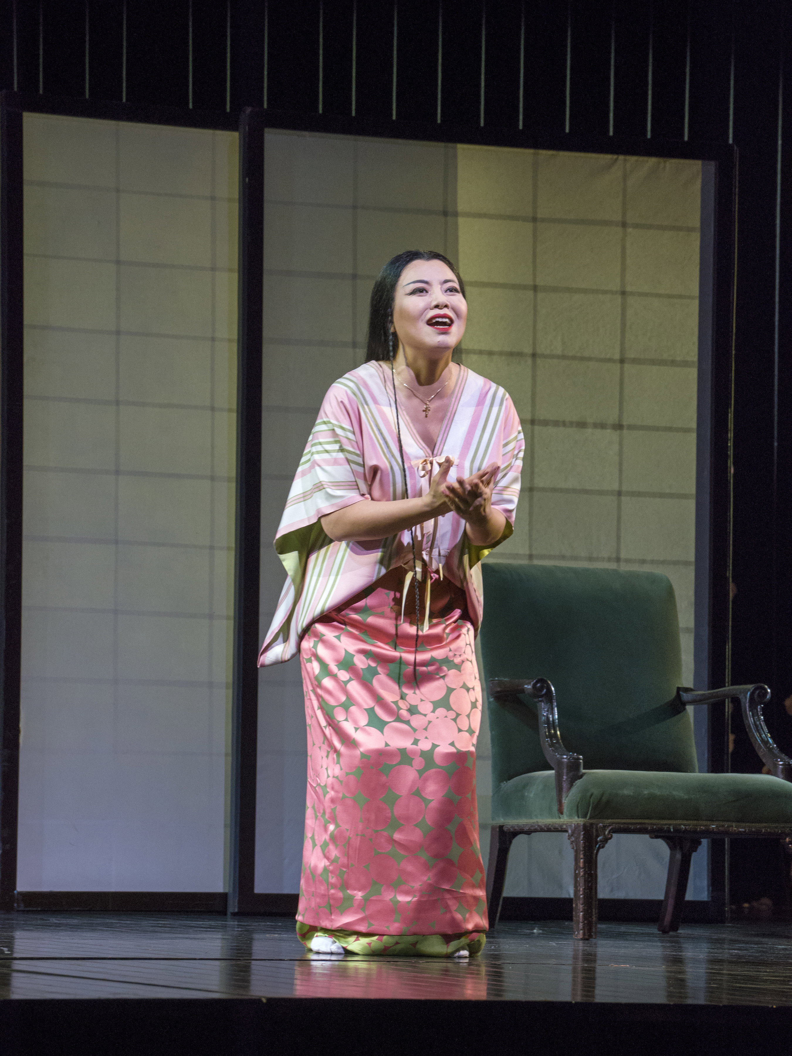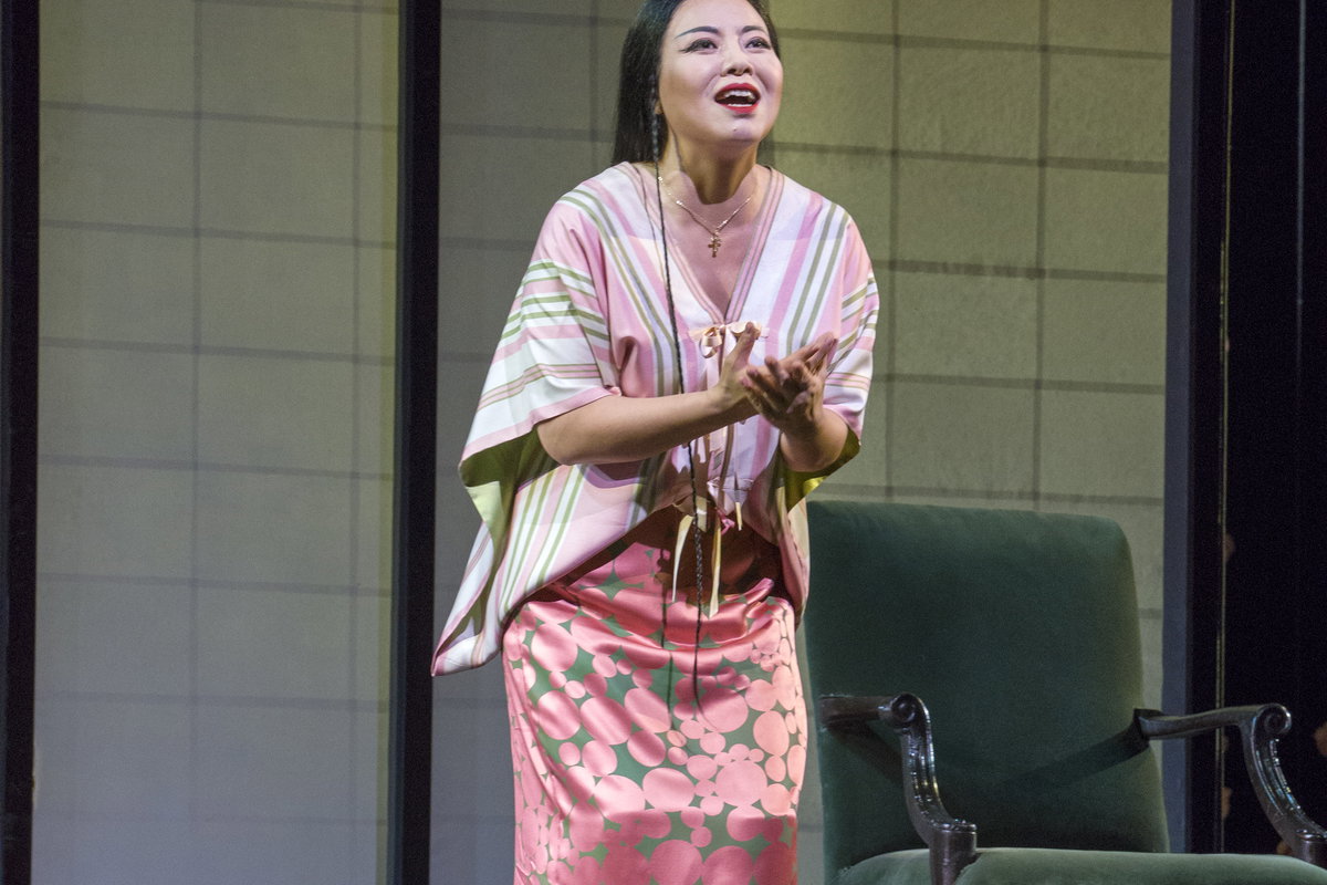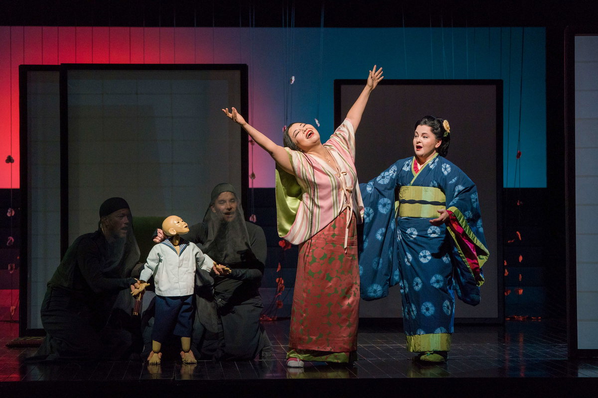 Sopranistka Hui He se představí v roli Cio-Cio-San, důvěřivé gejši, která je ochotná obětovat vše, co má, pro amerického námořního důstojníka Pinkertona, jehož zpívá Bruce Sledge. Elizabeth DeShong je její věrná služebná Suzuki a brazilský barytonista Paulo Szot shovívavý Sharpless. V úchvatně křehké inscenaci režiséra Anthonyho Minghelly bude orchestr řídit Pier Giorgio Morandi.