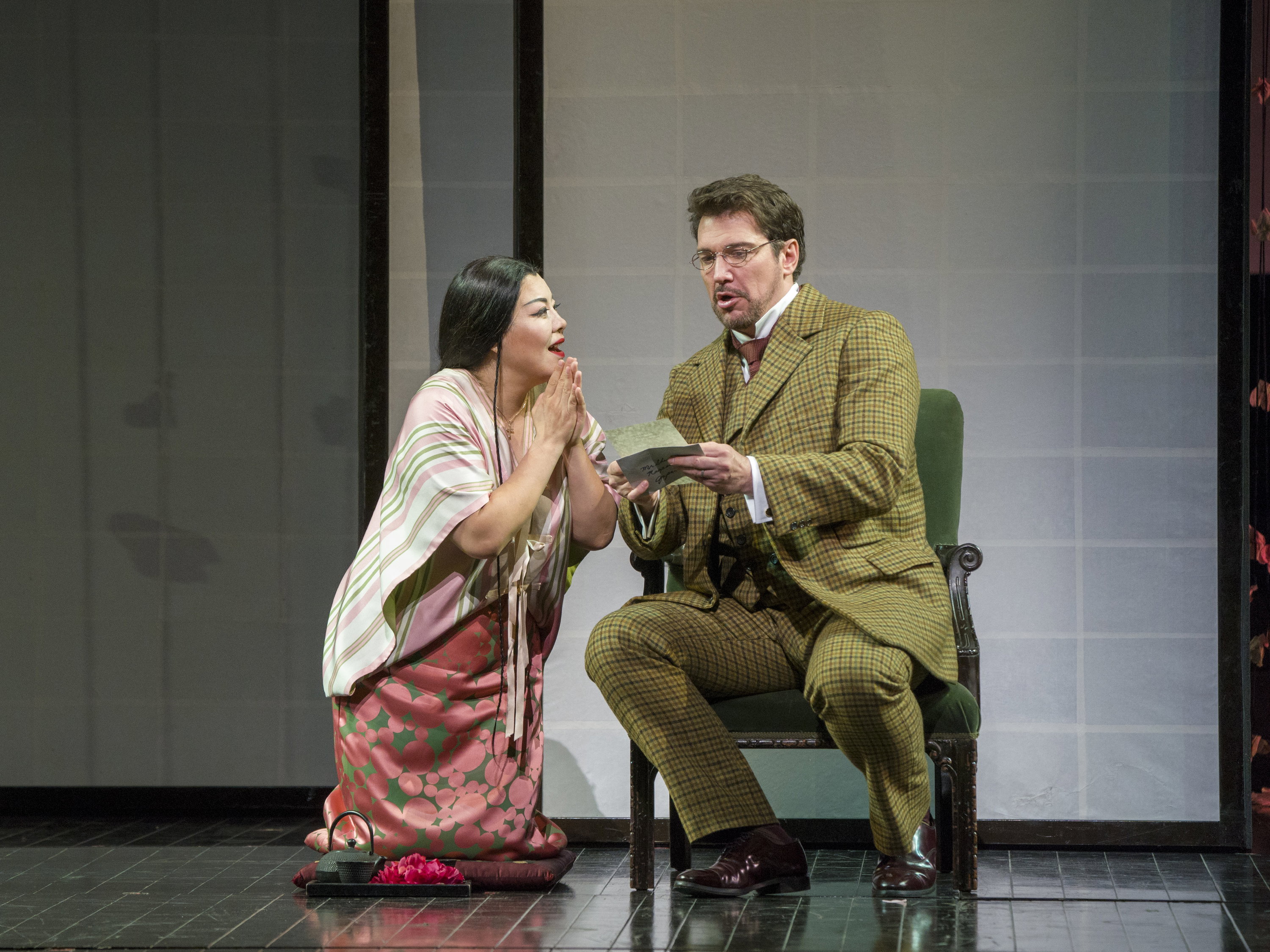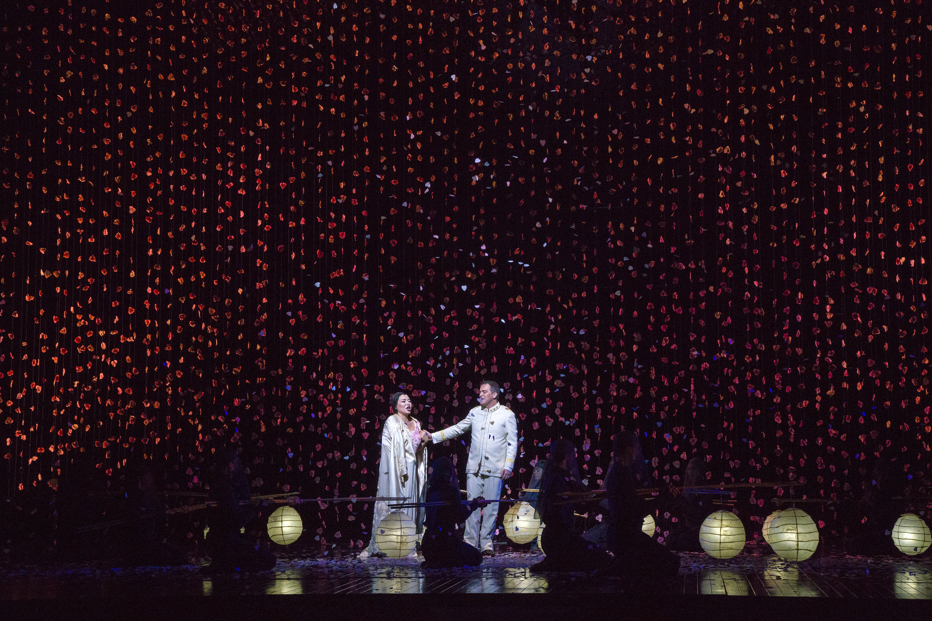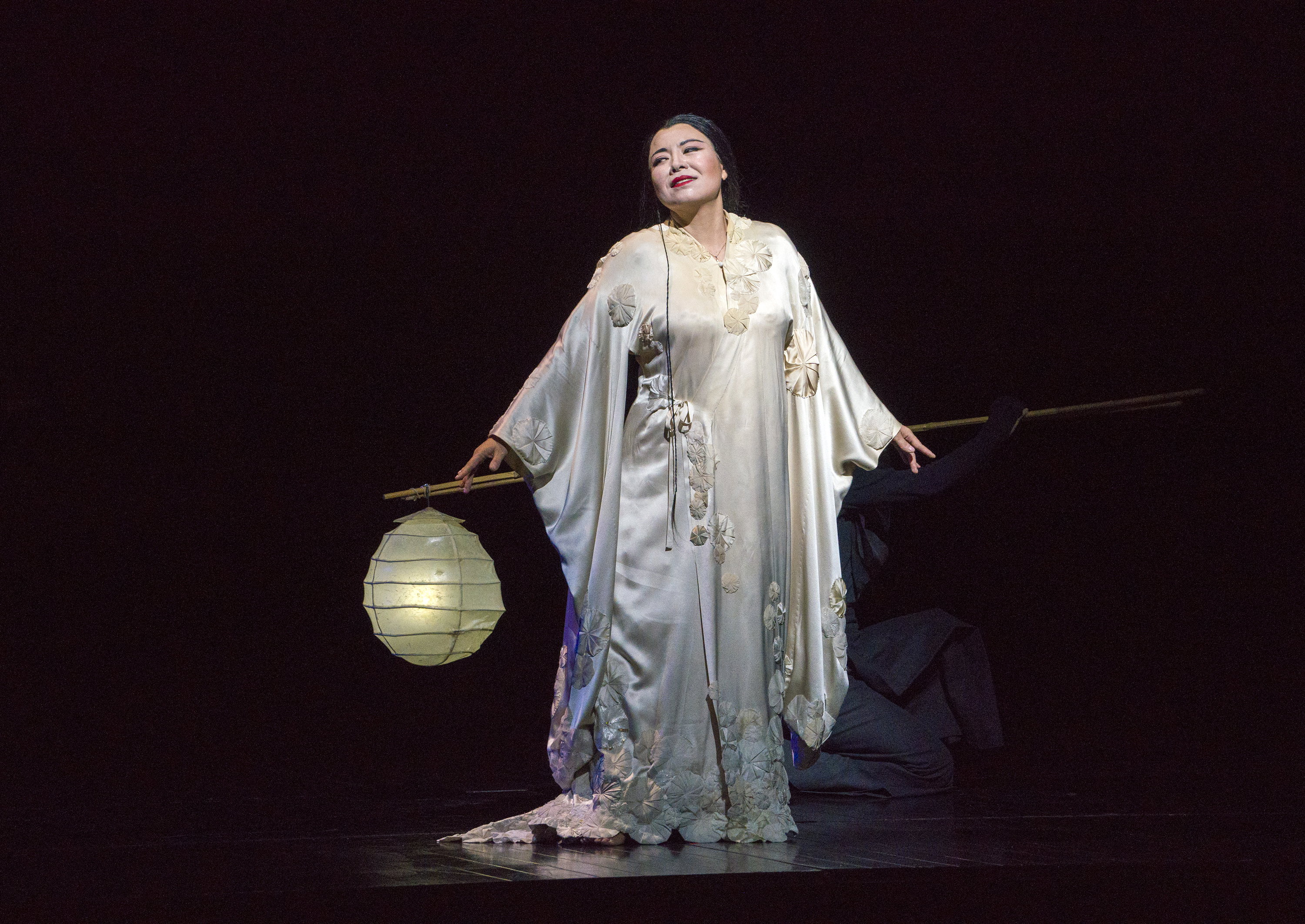 Sopranistka Hui He se představí v roli Cio-Cio-San, důvěřivé gejši, která je ochotná obětovat vše, co má, pro amerického námořního důstojníka Pinkertona, jehož zpívá Bruce Sledge. Elizabeth DeShong je její věrná služebná Suzuki a brazilský barytonista Paulo Szot shovívavý Sharpless. V úchvatně křehké inscenaci režiséra Anthonyho Minghelly bude orchestr řídit Pier Giorgio Morandi.