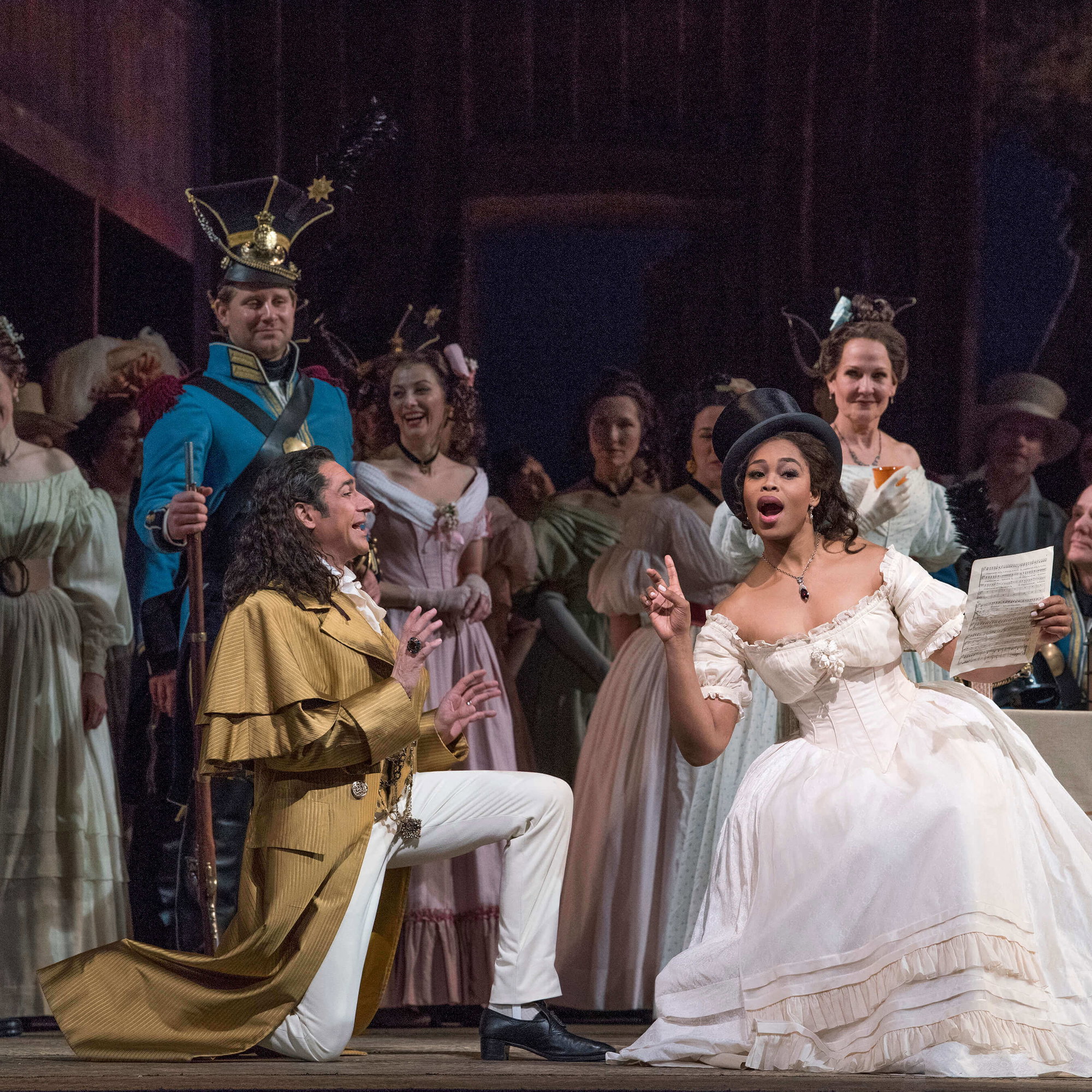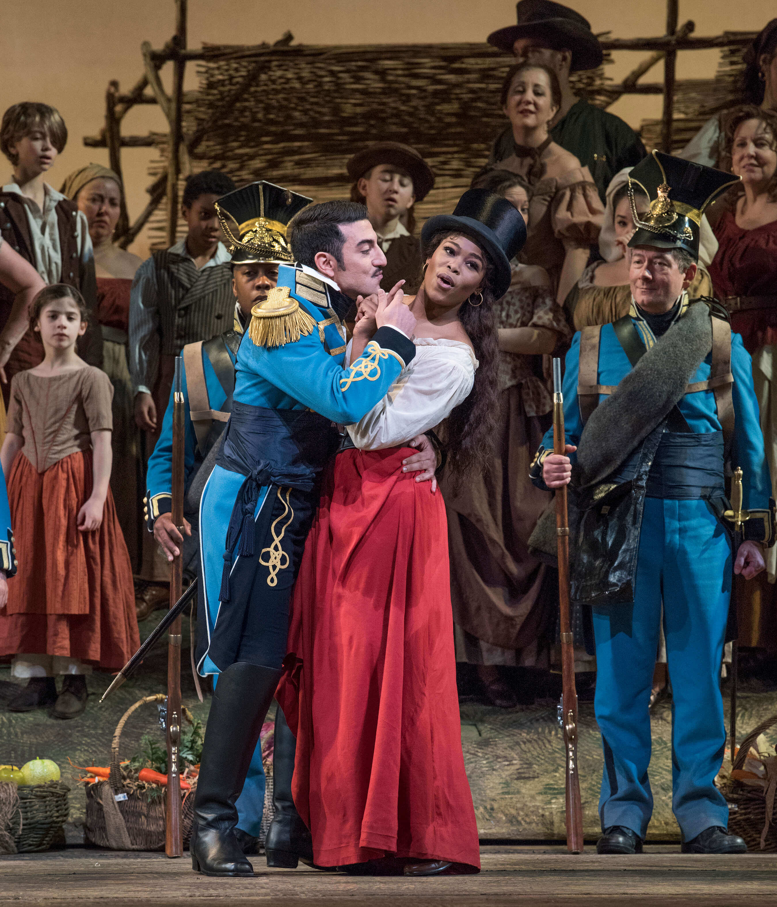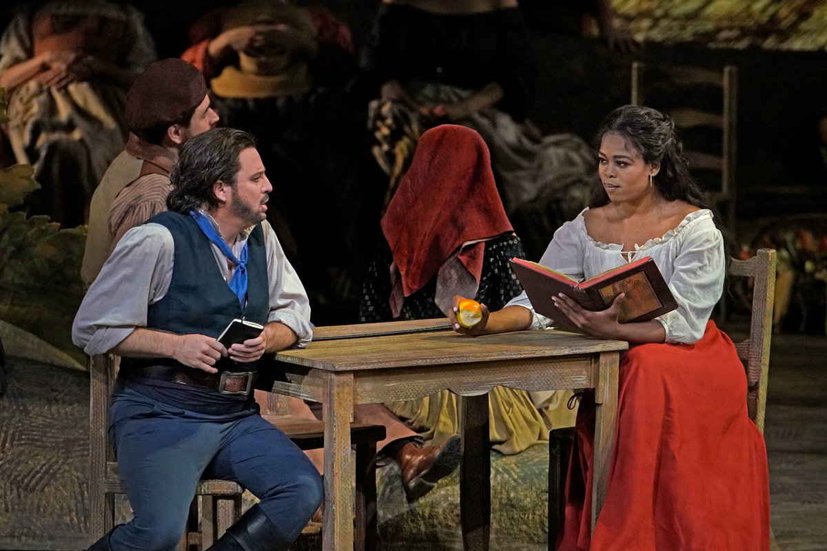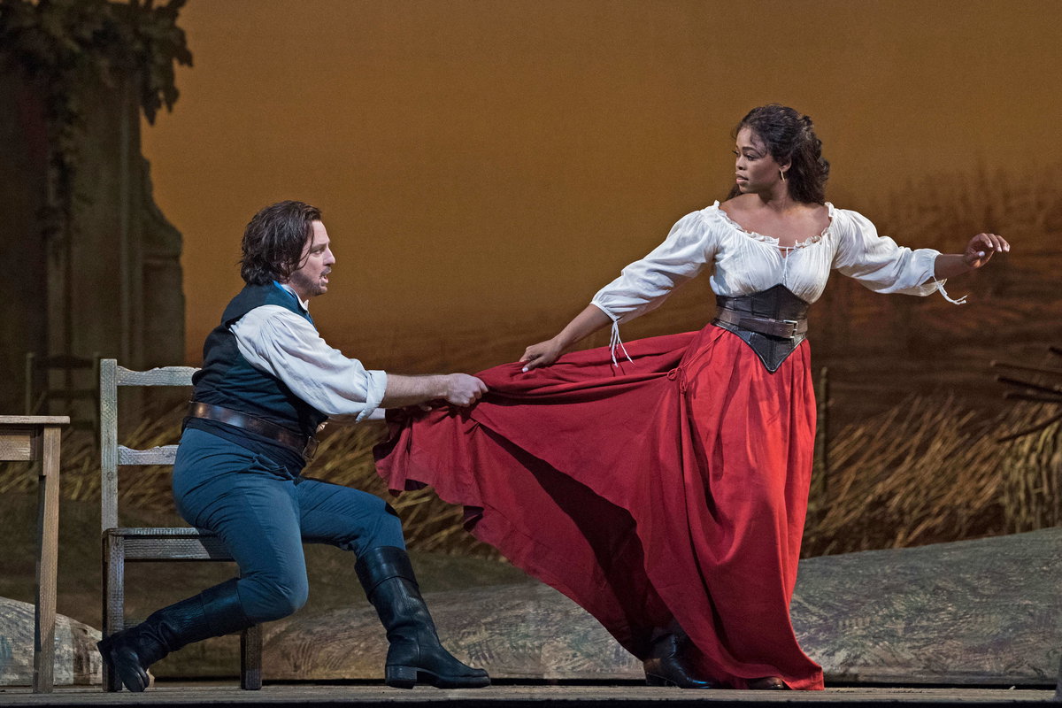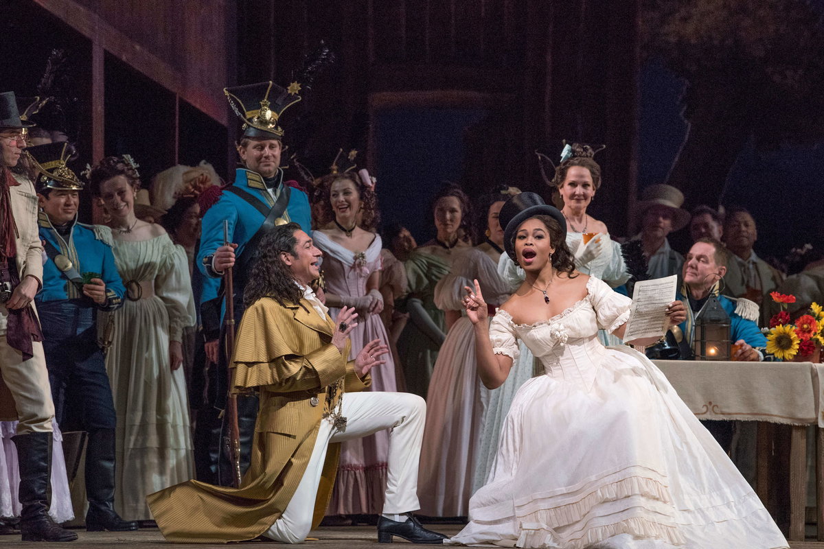 Donizettiho Nápoj lásky patří mezi nejlepší komedie operní literatury. V režii Bartletta Shera a pod taktovkou Dominga Hindoyana se představí Pretty Yende v roli temperamentní Adiny, do níž se zamiluje prostý venkovan Nemorino v podání Matthewa Polenzaniho. Davide Luciano v Met debutuje jako Adinin arogantní nápadník Belcore. Doktora Dulcamaru, obchodníka se zázračným lektvarem, zpívá Ildebrando D’Arcangelo. Dirigent Domingo Hindoyan bude s Nápojem lásky v Metropolitní opeře debutovat.