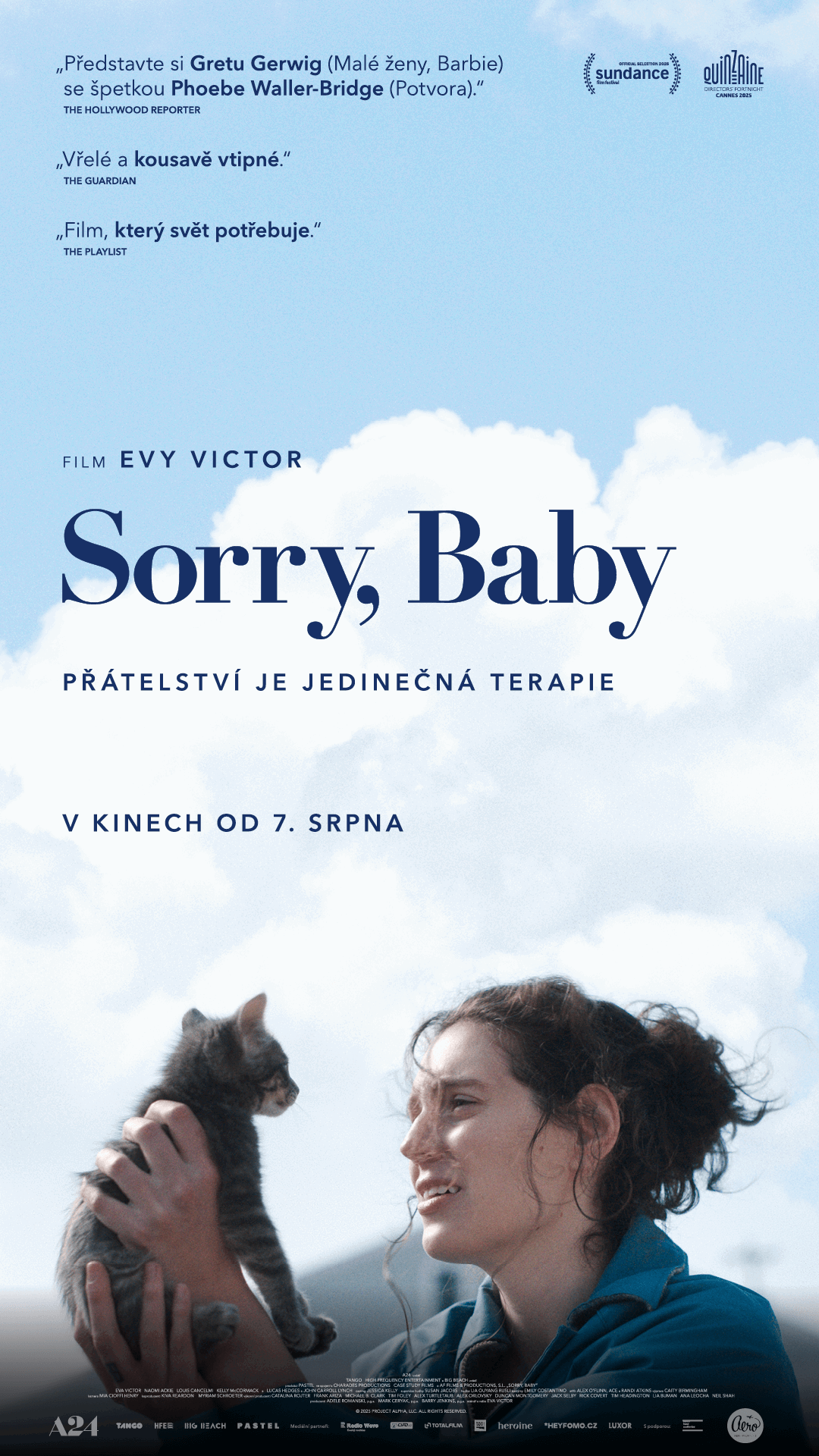 „Je vždycky skvělé objevit nový svěží filmařský hlas a o to víc, když se jedná o mladou režisérku. Přesně takovým objevem je i Eva Victor. Její debut Sorry, Baby připomíná svým mnohdy nevybíravým humorem seriálovou Potvoru, něžností knížky Sally Rooney a výstižností pro nás holky někdy těžko popsatelných pocitů zas filmy Grety Gerwig. Vlastně bych si tak trochu přála mít Evu za kámošku, to ale asi nejde. A tak alespoň ráda své kamarádky vezmu na její film. Budeme totiž odcházet z kina s pocitem, že nám někdo rozumí a natočil něco výjimečně blízkého. A jsem si jistá, že vaše kamarádky na tom budou stejně."