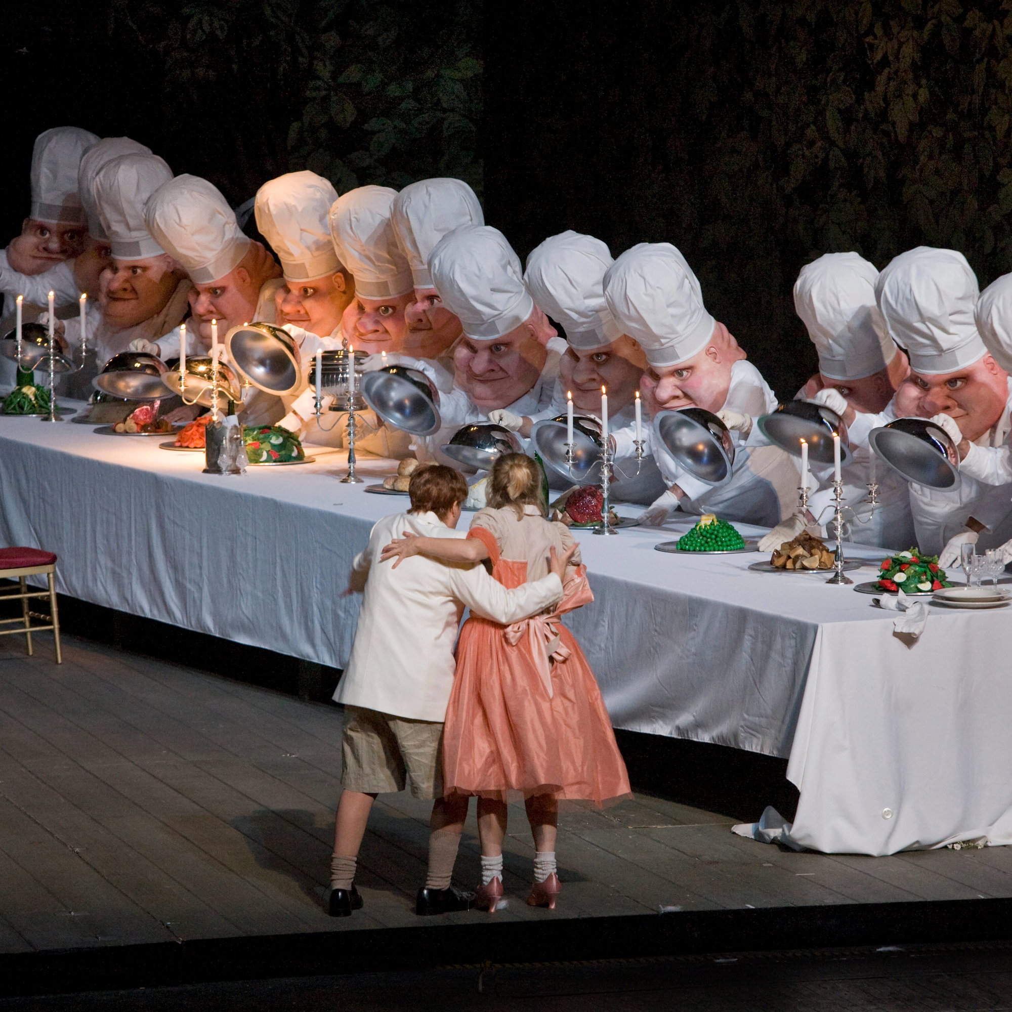 Kouzelně rozpustilý Jeníček v podání mezzosopranistky Alice Coote i uhlazeně bojovná Mařenka sopranistky Christine Schäfer stojí svým výkonem v popředí znamenitého souboru, v němž mimo jiné excelují Rosalinda Plowright jako zoufalá matka zabloudivších dětí a Alan Held coby jejich pramálo heroický otec. Nezapomenutelný part potřeštěné lidojedky Ježibaby pak ztělesnil legendární tenorista Philip Landridge – pěvec, který v inscenaci ještě s plným nasazením ztvárnil jednu ze svých posledních rolí.
