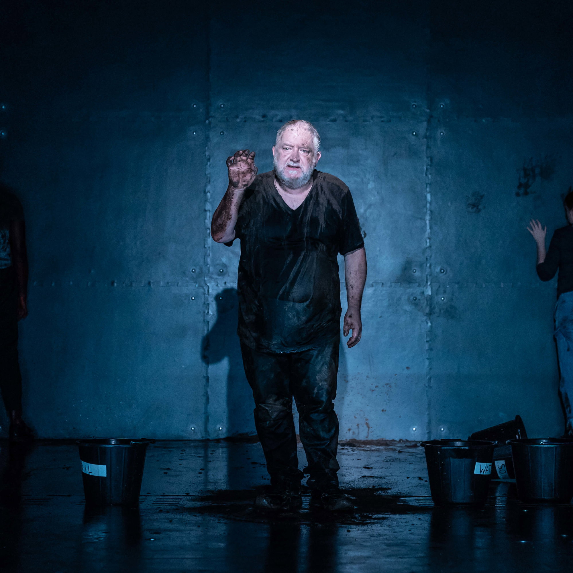 Sen noci svatojánské inscenoval Hill-Gibbins v bahně a s krutým cynismem, scénu pro pro tragikomedii mravů Něco za něco zaplnil nafukovacími pannami. Nyní uzavřel krále Richarda II. už na začátku hry do kobky, kde se obvykle ocitne až na jejím konci. A nechal ho v podání jednoho z nejlepších žijících Shakespearovských herců Simona Russella Beala (NT Live: Král Lear, Spolupracovníci) vzpomínat na události, kterého ho přivedly k pádu a ztrátě koruny.
